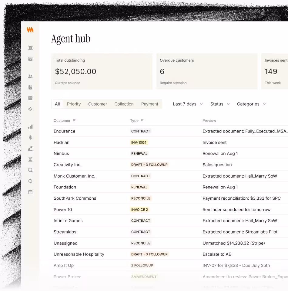 Real-time reporting on DSO, aging, cashflow and more. Always up to date. Complete revenue and customer view across Stripe and your sales-led motion.